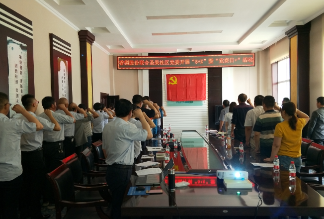 2019年5月24日,香梨股份按照與圣果社區(qū)共駐共建協(xié)議要求,聯(lián)合圣果社區(qū)黨委一起開展了 “5+X”暨“黨費(fèi)日+”主題黨日活動(dòng),活動(dòng)由香梨股份機(jī)關(guān)黨支部書記彭海東同志主持。香梨股份全體黨員和社區(qū)、市政工程公司黨員代表、入黨積極分子37人參加了活動(dòng)?;顒?dòng)中重溫了入黨誓詞、誦讀黨章、繳納黨費(fèi)、講主題黨課,還組織黨員開展了關(guān)于如何有效開展好黨支部工作的建言獻(xiàn)策交流發(fā)言。