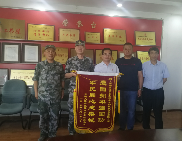 “愛國擁軍強國防 軍民同心建梨城”庫爾勒銀泉供水公司收到中國人民解放軍駐庫爾勒某部隊送來的錦旗和感謝信