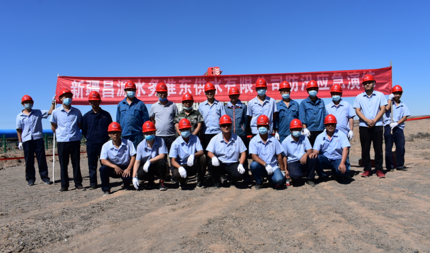 為進(jìn)一步增強(qiáng)昌源水務(wù)準(zhǔn)東供水公司應(yīng)對(duì)洪水突發(fā)事故的綜合指揮能力、快速反應(yīng)能力、應(yīng)急處理能力和協(xié)調(diào)作戰(zhàn)能力,提高運(yùn)行公司防洪應(yīng)急救援水平,促進(jìn)救援隊(duì)伍的快速化、正規(guī)化建設(shè),切實(shí)保障供水管線及設(shè)備的安全運(yùn)行,準(zhǔn)東供水公司開(kāi)展了防汛應(yīng)急演練。