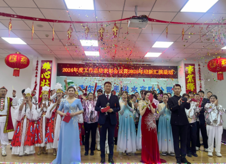 2025年1月21日上午,庫爾勒銀泉供水有限公司組織全體干部職工在七樓會議室開展2024年工作總結表彰會議暨2025年迎新匯演活動,昌源集團黨委副書記、副總經理、總會計師獨文輝、城建集團黨委副書記、副總經理張帆、城建集團黨委委員、財務總監(jiān)黃陶出席本次活動。